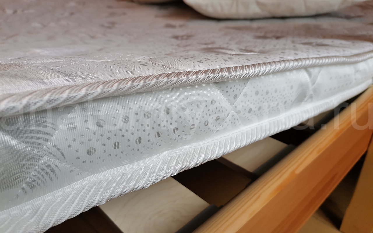 Верхнее покрытие матраса жаккард, стеганый с синтепоном - высокопрочная ткань, состоящая из синтетических материалов с добавлением нитей из натуральных тканей с особым переплетением волокон. Синтетический жаккард может быть двойным (дублированным) или недублированным. Как правило, дублированный жаккард используют в качестве верхнего покрытия для матрасов, чехлов и наматрасников. Самой важной характеристикой ткани является его прочность и износостойкость.